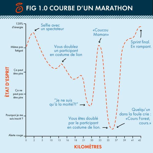 We were returning to the halfway point at Bastille and the sun was starting to get to me. My head was hurting and I realized I was slowing a bit. I thought of this chart that someone posted on Facebook a few days before the race. I’d say it’s fairly accurate. The halfway point can be a bit of a downer, especially if you think about the fact that you’re only half way there. I figured I just needed to push through until km 34 when I would see the LRP cheerleaders again, but some more familiar faces around this point would have been encouraging. Later I found out that Anne and Nathan were looking for me at the Bastille but missed me. If only I had known I would have looked too!